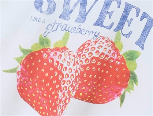 Hvid t-shirt fra Name It med jordbærprint foran.