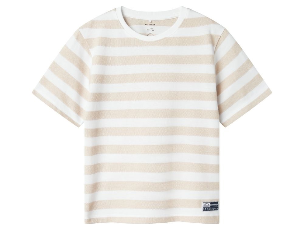Stribet t-shirt i hvid og sandfarvet fra Name It.