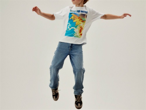Klassisk kortærmet t-shirt med rund halsudskæring og et stort farverigt print af Pikachu med teksten "READY FOR BATTLE". Printet er lavet som et gummiprint, der giver et let skinnende udtryk og føles blødt mod huden. T-shirten er lavet i en blød og strækbar jerseykvalitet – perfekt til leg og hverdagsbrug.