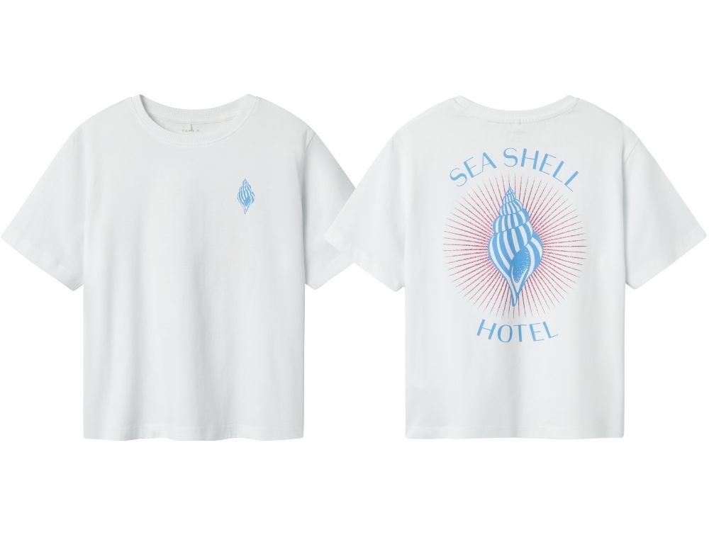 Hvid t-shirt fra Name It med cool print på ryggen.