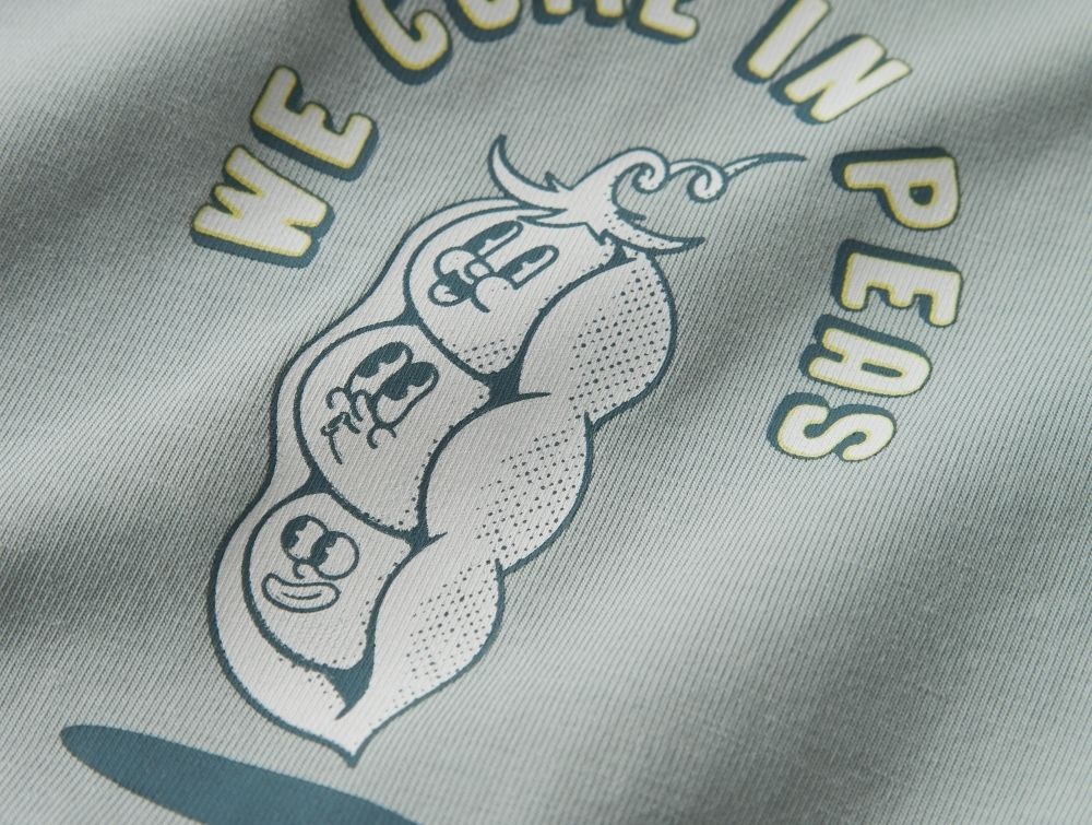 T-shirten har korte ærmer, rund hals og et humoristisk print af en ærtebælg med teksten: "we come in peas". En sjov og afslappet T-shirt til sommerens hverdage.
