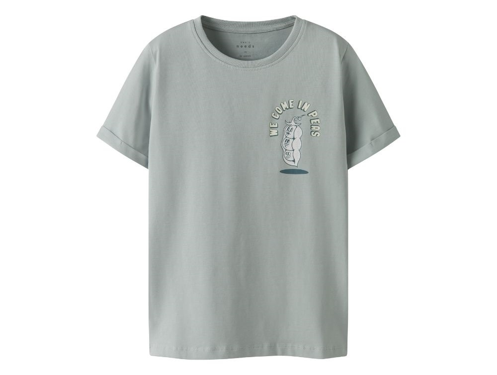 Støvet lyseblå t-shirt med print af ærtebælg fra name It 13227472 pearl blue peasStøvet lyseblå t-shirt fra Name It 13227472 pearl blue peasPrintmotiv af sjov ærtebælg på lyseblå t-shirt fra name It 13227472 pearl blue peas