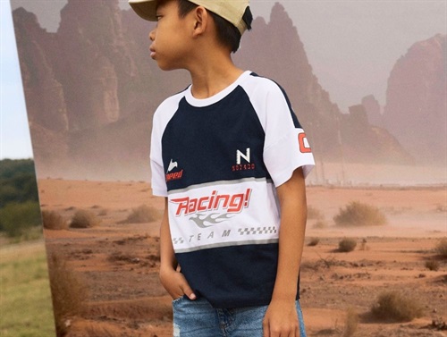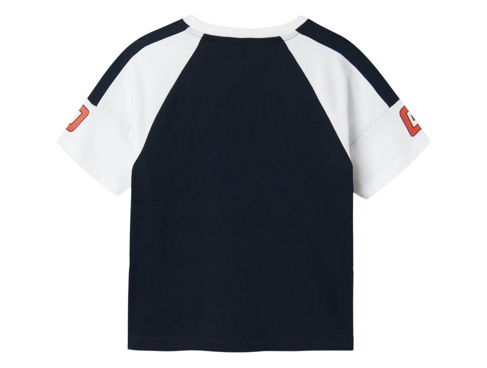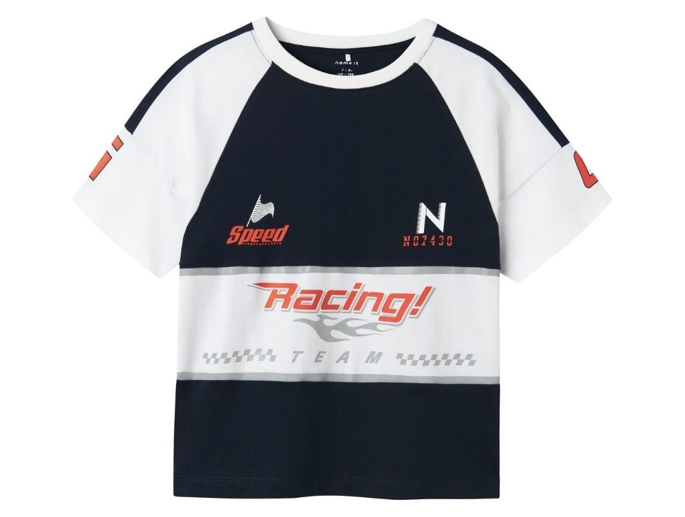 Mørkeblå t-shirt med motorsportprint og color-block detaljer fra Name It: