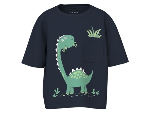 Mere information om Name It t-shirt navy blazer dino grass med brystlomme