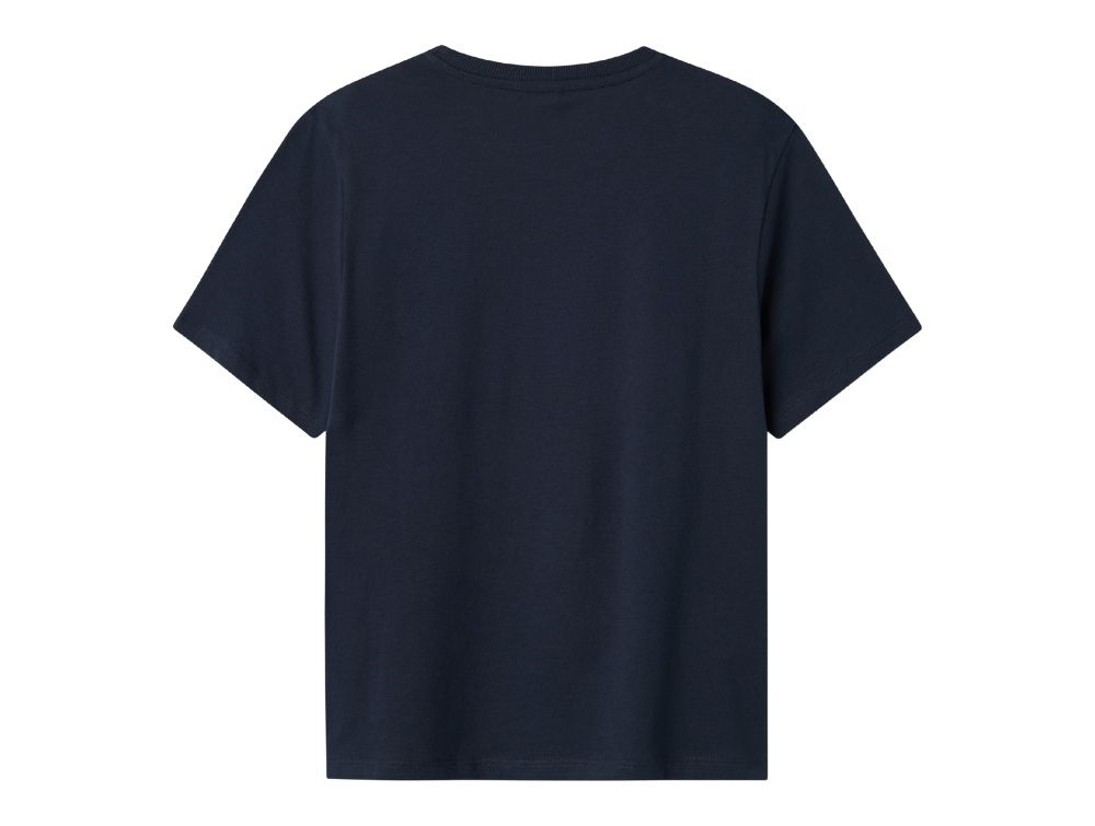 Mørkeblå t-shirt med stemningsfuldt gummiprint af Amalfikysten foran. Modellen har rund hals, korte ærmer og en klassisk pasform. Fremstillet i blød jerseykvalitet af økologisk og genanvendt bomuld, som føles behagelig mod huden og giver god bevægelighed – perfekt til både leg og hverdagsbrug.