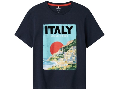 T-shirt i marineblå med print af Amalfikysten i Italien fra Name It.