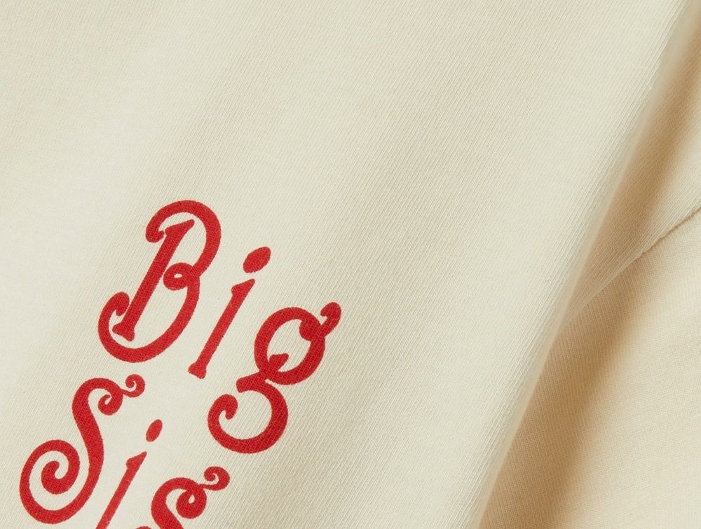 Designet har korte ærmer, en rund hals og et blødt pigmentprint, der sikrer en let og komfortabel fornemmelse. Perfekt til hverdagsbrug eller som en fin gave til en kommende storesøster.