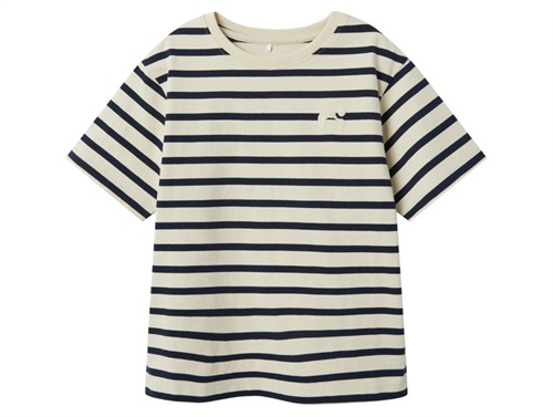 T-shirt i farven råhvid (white swan) med mørkeblå striber fra Name It.