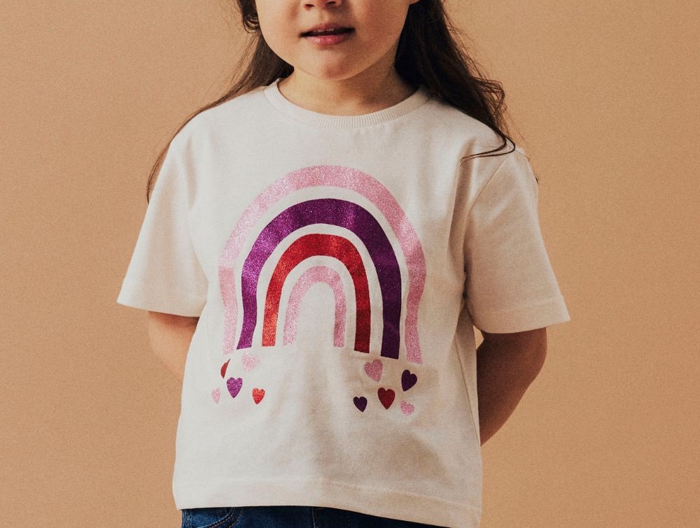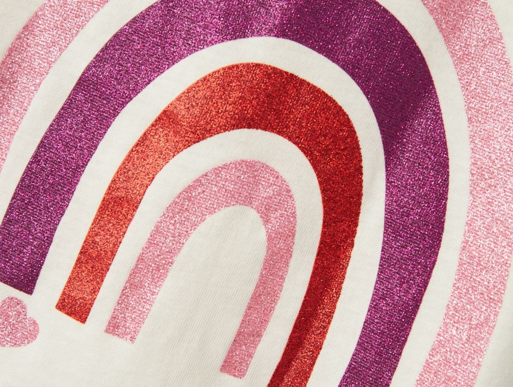 Top fra Name It i råhvid med glimmerregnbue og i blød jerseykvalitet