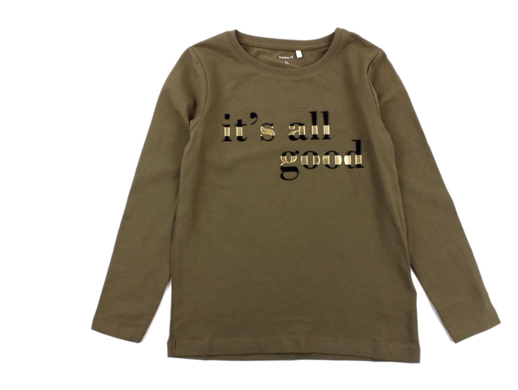 Langærmet t-shirt med 'It's all good' applikation fra Name It.