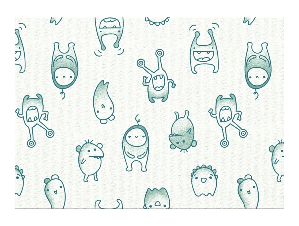 Den blå body er ensfarvet mens de to hvide bodyer har monsterprint.