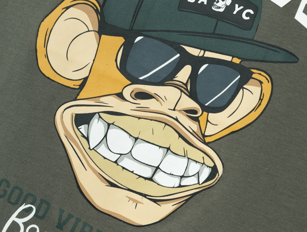 "Bored of Directors" er et moderne og humoristisk brand, der bygger på de ikoniske figurer fra Bored Ape-universet. Aben på t-shirten er en del af dette populære designkoncept, kendt for sin unikke stil og karakteristiske attitude. Med et legende og rebelsk udtryk bringer denne t-shirt et trendy og iøjnefaldende element til garderoben. Licensen er udviklet i samarbejde med SkyBrands, som sikrer autentisk design, der appellerer til både børn og voksne med sans for moderne popkultur.