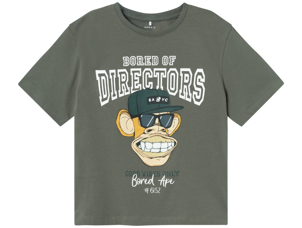 T-shirt i farven tea leaf med print af Bored of Directors fra Name It.
