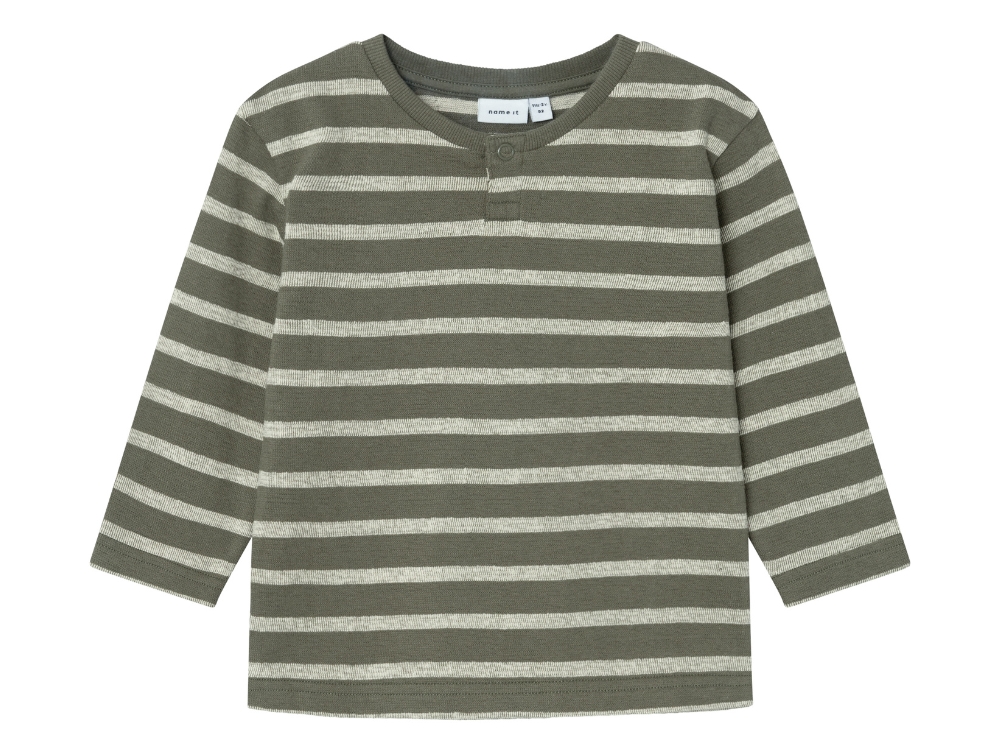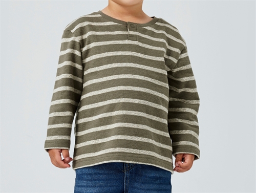 Stribet langærmet top/bluse i farven tea leaf fra Name It.