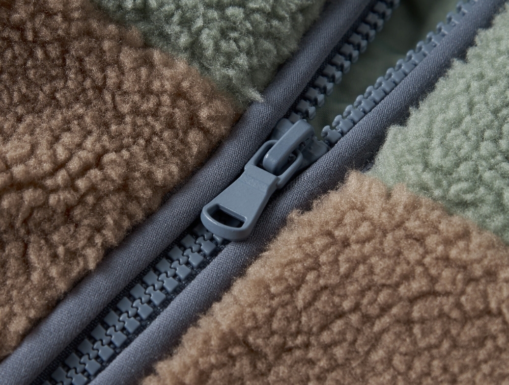 Jakken er fremstillet i 100% polyester (genanvendt materiale). Teddy-kvaliteten har en blød og let struktureret overflade, der holder på varmen uden at føles tung. Materialet er behageligt mod huden og egner sig godt som ekstra lag på kølige dage.