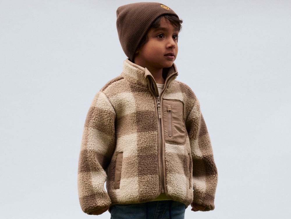 Teddyjakke i brun og beige tern (fossil) fra Name It.