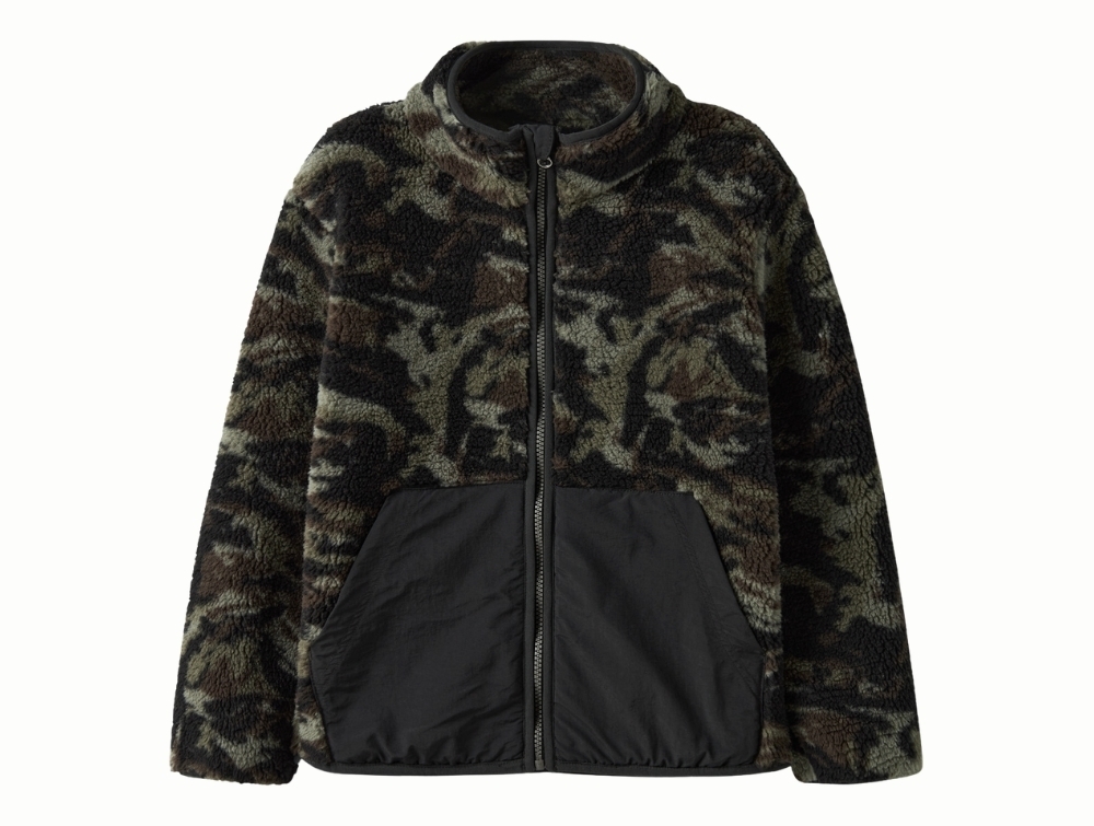 Teddyjakke i grøn nuance (dusty olive) fra Name It med camouflageinspireret print.