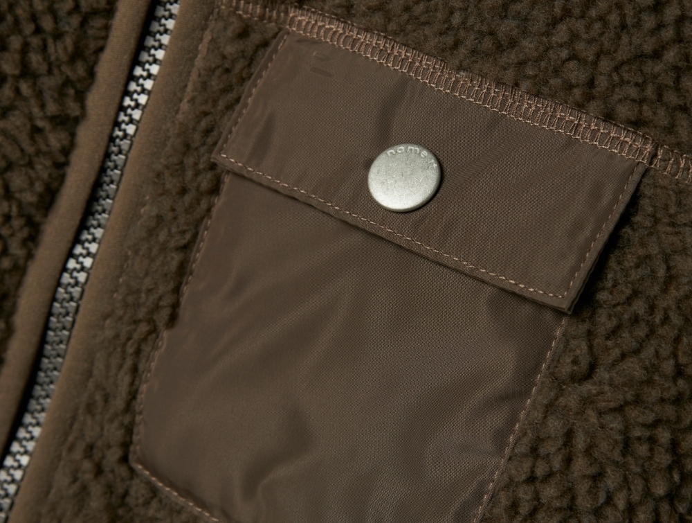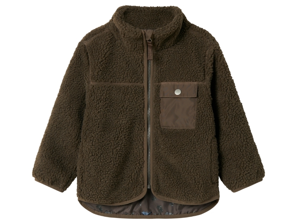 Name It teddyjakke i morel med brystlomme forsideName It teddyjakke i morel med brystlomme på barnName It teddyjakke i morel med brystlomme bagsideDetalje af brystlomme på Name It teddyjakke i morel