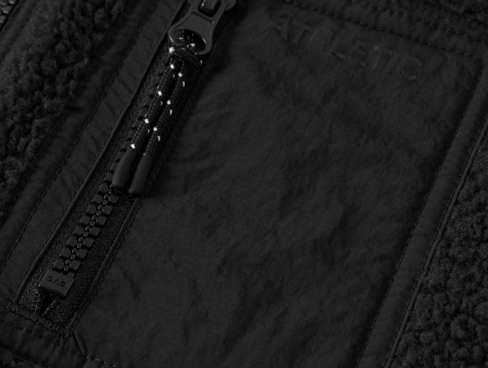 Modellen er udstyret med høj krave og gennemgående lynlås med hagebeskytter, som skåner huden ved lukning. På brystet sidder en praktisk lynlåslomme i glat materiale, og derudover har jakken sidelommer til hænder eller småting. Elastik ved ærmerne sikrer en god afslutning og hjælper med at holde varmen inde.