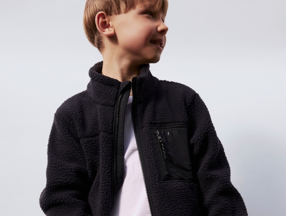 Name It teddyjakke i sort med brystlomme  Name It teddyjakke i sort på model  Name It teddyjakke i sort med lynlåslomme detalje  Name It teddyjakke i sort set bagfra