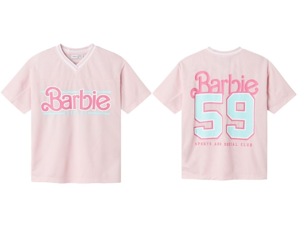 Toppen er designet til børn og har en afslappet pasform, korte ærmer og en let og fleksibel kvalitet, som sikrer god bevægelsesfrihed. Barbie er den ikoniske modefigur fra Mattel, kendt for at inspirere kreativitet og drømme hos børn verden over. Printet er lavet i en blød gummieffekt, der føles behagelig mod huden og giver toppen et moderne og legende udtryk.