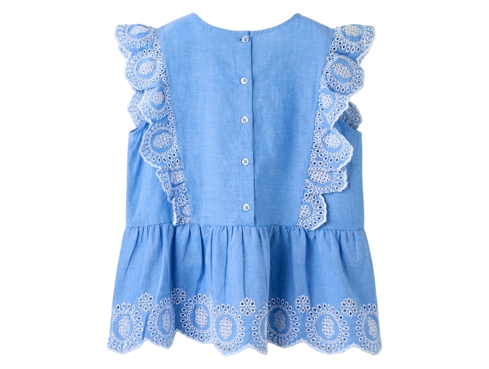 Name It top blå med broderie anglaise flæserName It top blå broderie anglaise detaljeName It top blå broderie anglaise bagfra