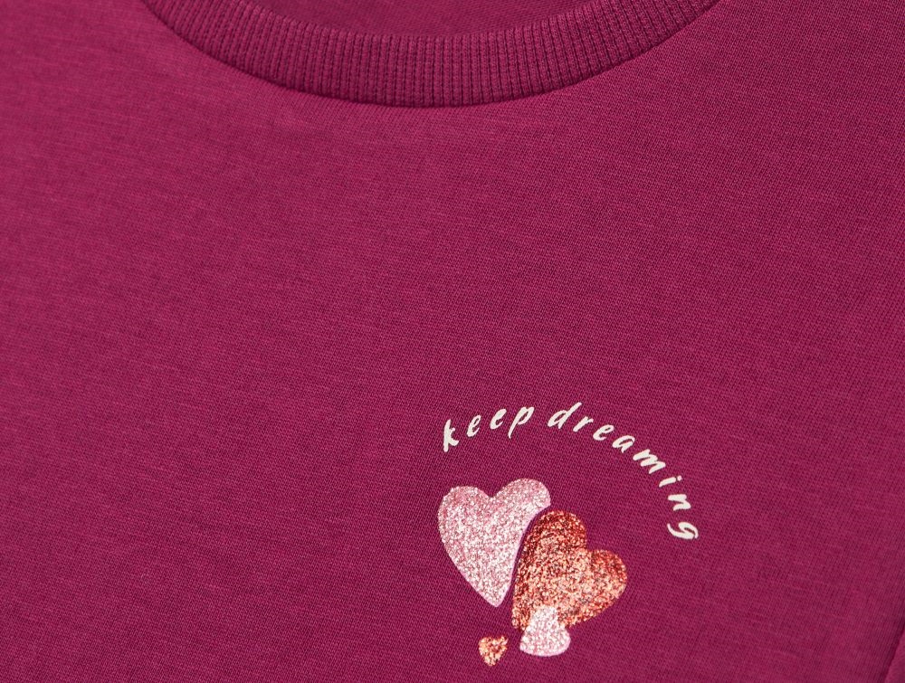 Top fra Name It i boysenberry med glimmerhjerter og blød jerseykvalitet