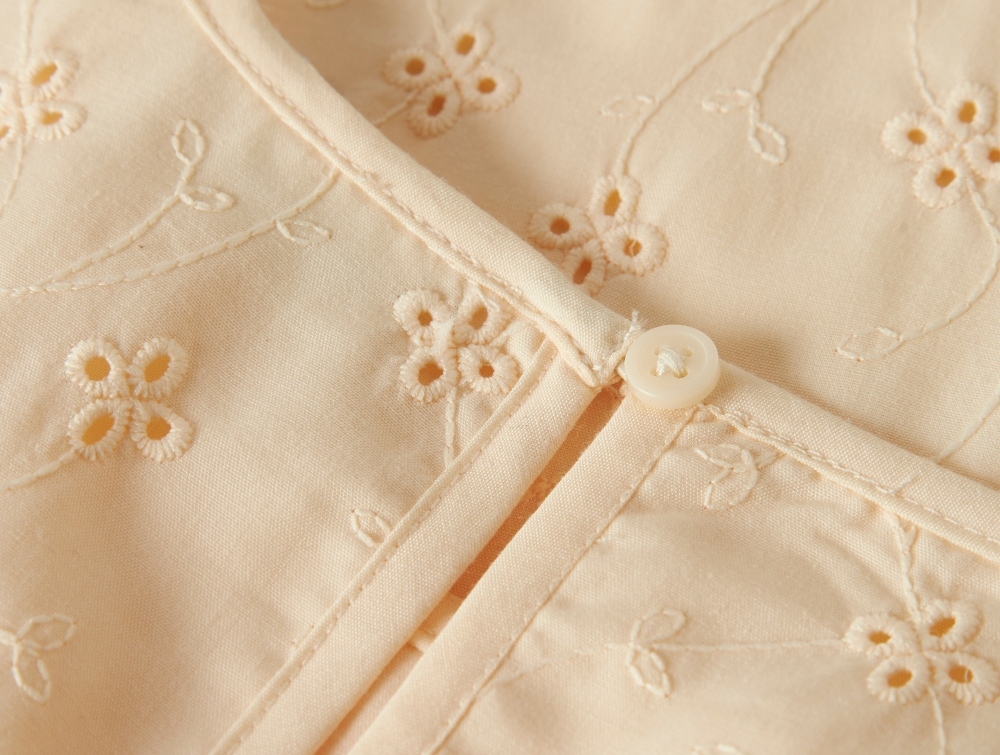 top fra Name It i lys gul nuance med broderet blomsterstrukturdetalje af knaplukning bagpå broderet top fra Name It i buttercream