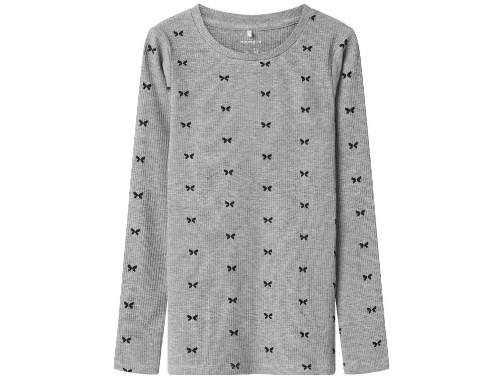 Langærmet top i rib i gråmeleret med sløjfer fra Name It.