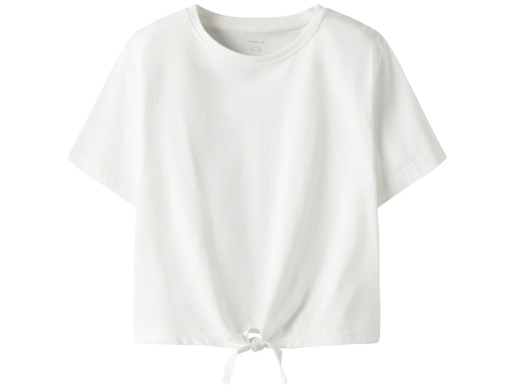 Hvid top fra Name It i blød jersey med bindedetalje og klassisk rund hals.