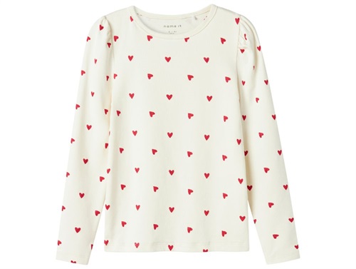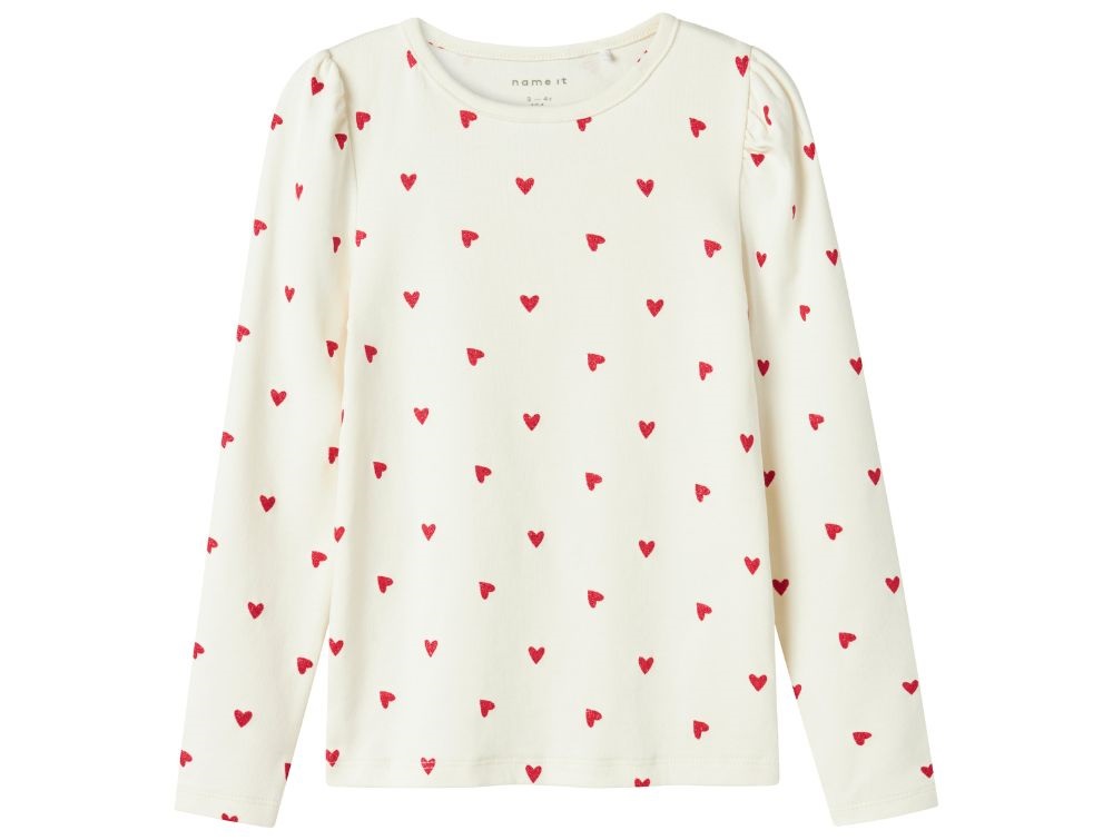 Langærmet bluse i farven cloud dancer med print af hjerter fra Name It.