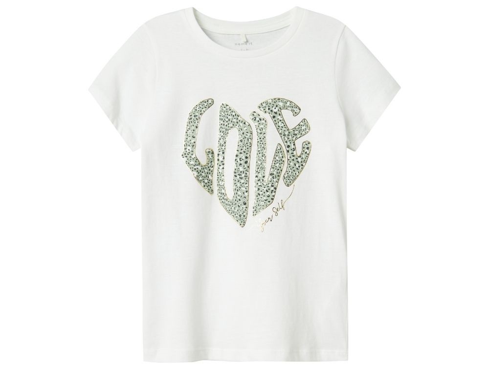 Hvid top fra Name It i blød jersey med skønt LOVE-tekstprint og klassisk rund hals.