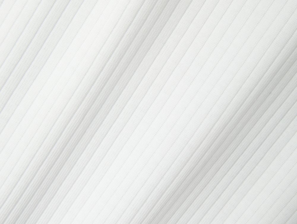 T-shirten er lavet i blød ribstrikket bomuld med lodrette nålestriber og god elasticitet. Den har korte ærmer og en diskret syningsdetalje foran.