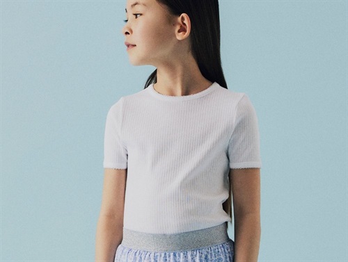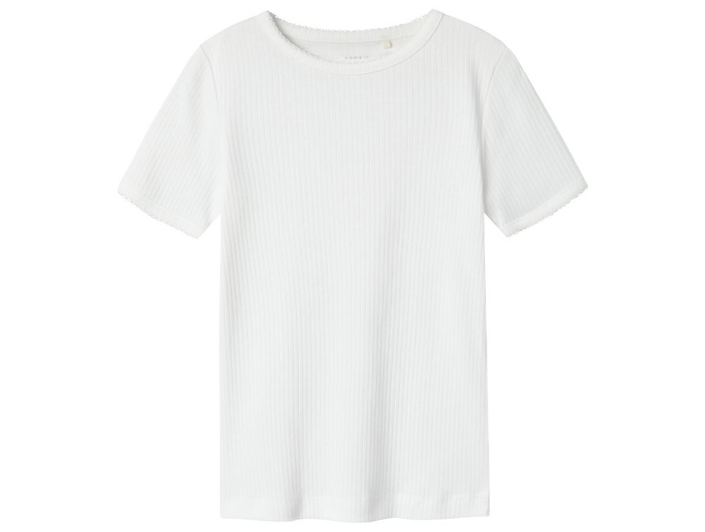 Hvid rib-T-shirt fra Name It med rund hals og tætsiddende pasform.