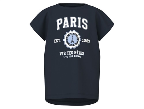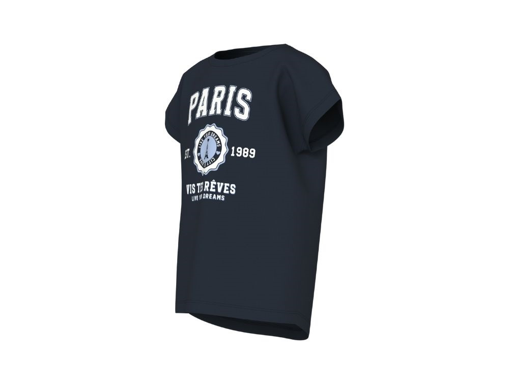 Mørkeblå top fra Name It i blød jersey med Paris tekstprint og klassisk rund hals.