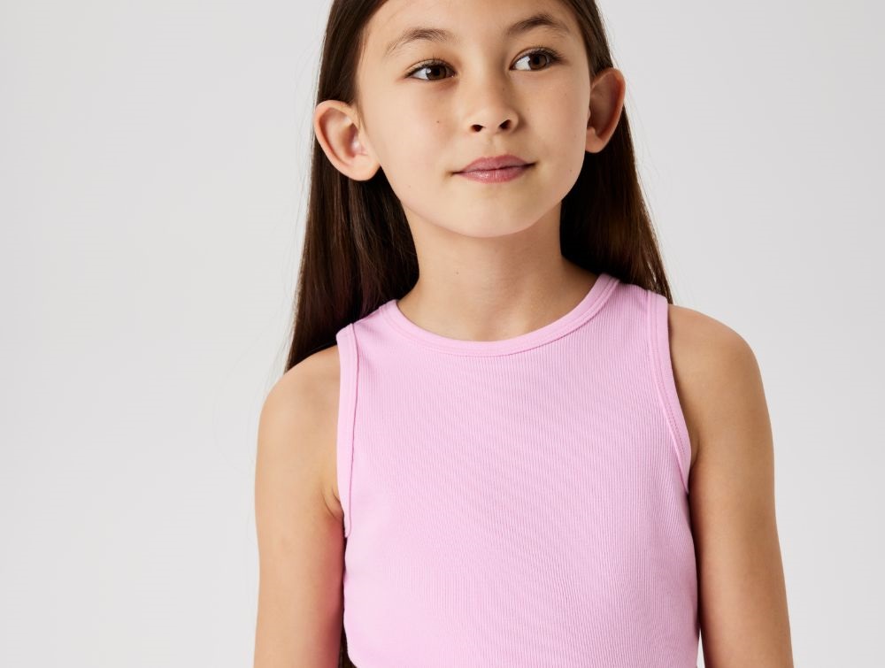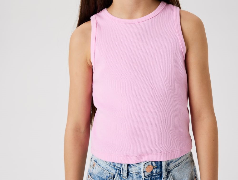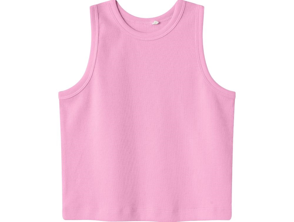 Blød og strækbar tanktop fra Name It i en fin ribstrikket kvalitet, der giver god elasticitet og en komfortabel pasform.