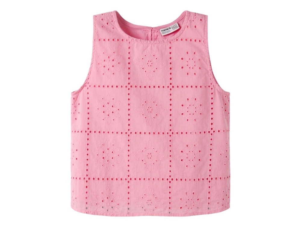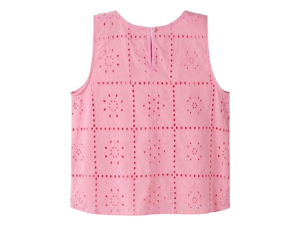 Name It top i pink drink med hulmønster forfraName It top i pink drink med broderi anglaise detaljeName It top i pink drink med hulmønster bagfra