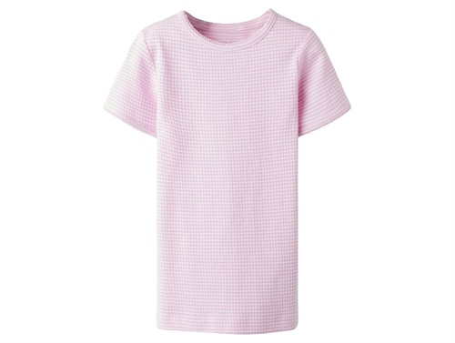 Lyserød rib-T-shirt med nålestriber fra Name It med rund hals og tætsiddende pasform.