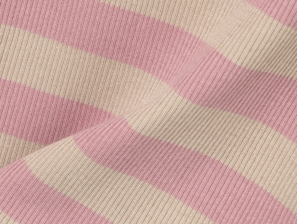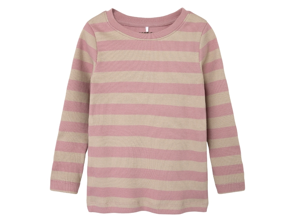top med rosa og beige striber fra Name Itfrontbillede af top med rosa og beige striber fra Name Itnærbillede af ribstruktur på top med rosa og beige striber fra Name It