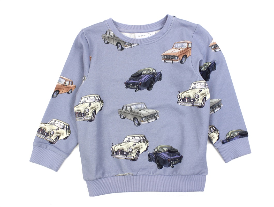 Sweatshirt i farven troposphere med print af veteranbiler fra Name It.
