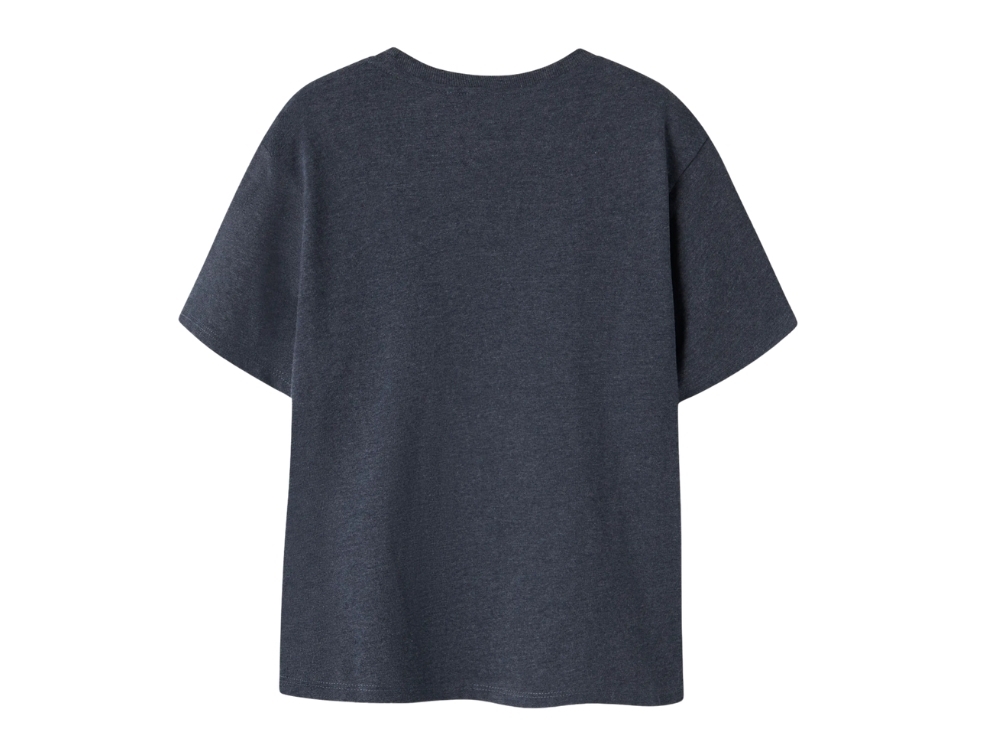 Designet har rund hals, korte ærmer og en almindelig pasform, som gør modellen nem at bruge til både skole og fritid.