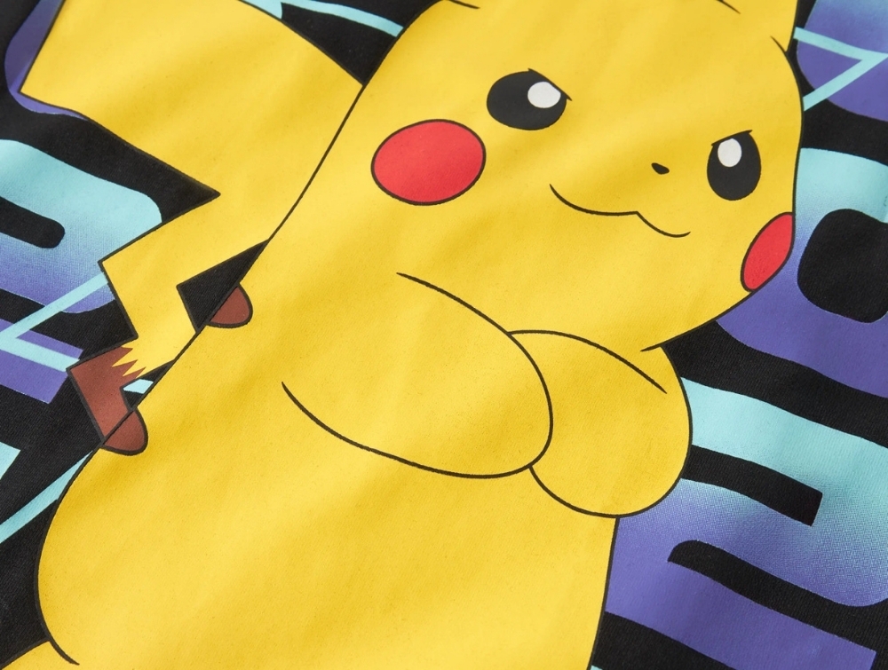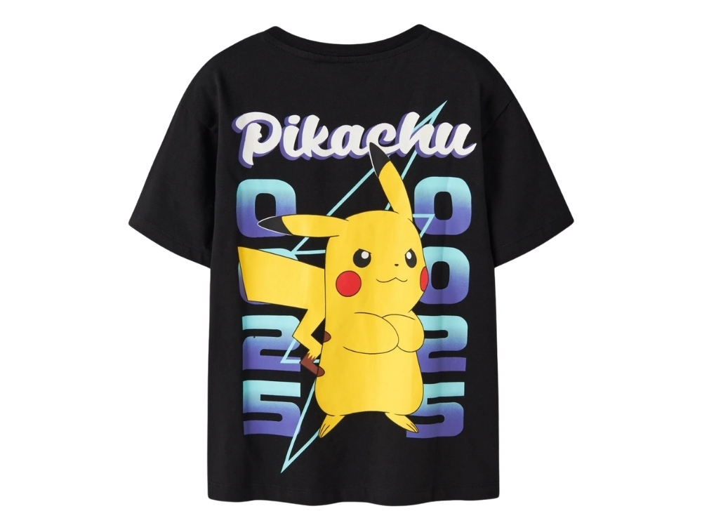 Designet har korte ærmer, rund hals og print på både front og ryg med Pikachu fra Pokémon universet. Pokémon er kendt for sine farverige karakterer og eventyr, som mange børn genkender. T-shirten har almindelig pasform.