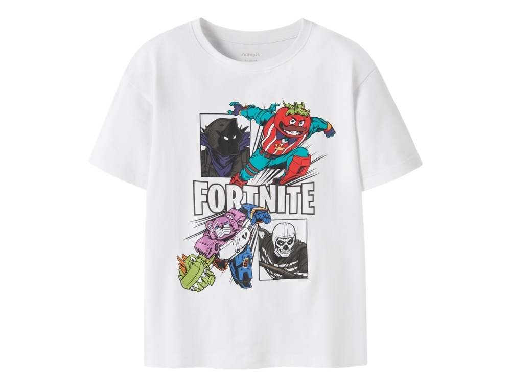 T-shirt i hvid nuance (bright white) fra Name It med Fortnite print.