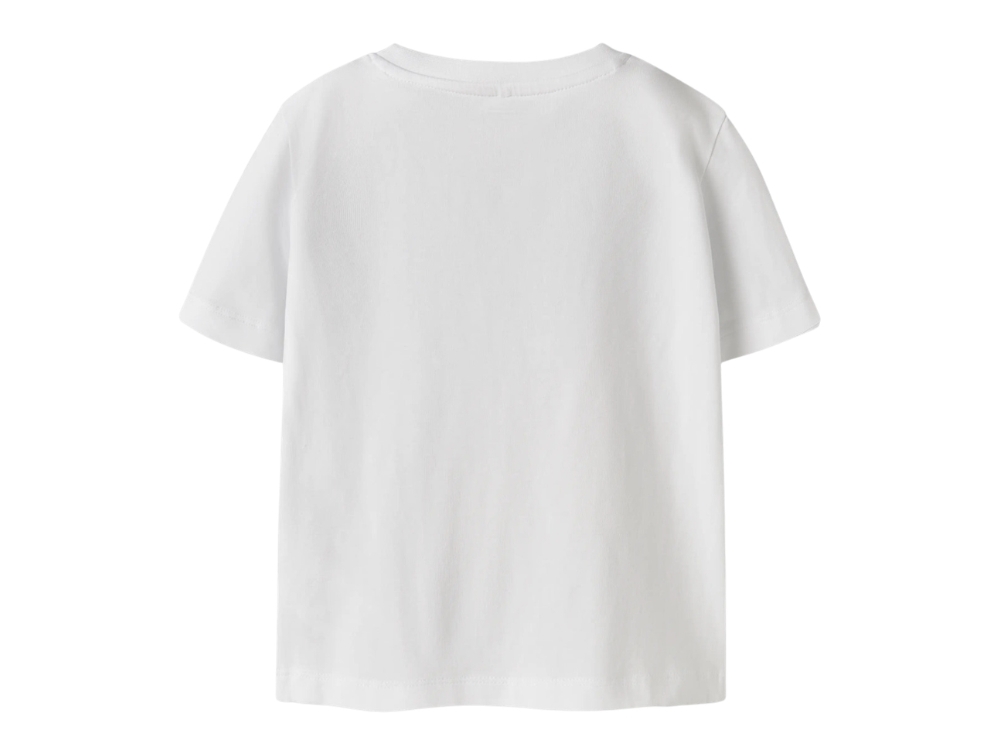 Dreng iklædt Name It t shirt i hvid med Pokémon print foranName It t shirt i hvid med Pokémon print foranName It t shirt i hvid med Pikachu og venner print detaljeName It t shirt i hvid uden print set bagfra