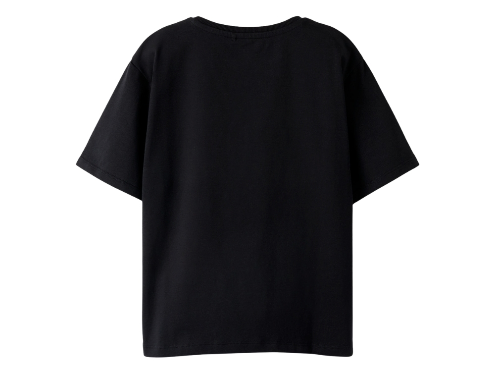 Name It t-shirt i sort med Disney Stitch printName It t-shirt black med Stitch motiv og hjerterName It t-shirt black detalje af Stitch printName It t-shirt black set bagfra