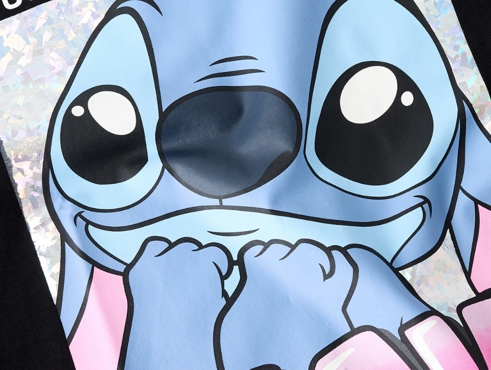 Designet har rund hals og korte ærmer samt en almindelig pasform. Stitch er kendt fra Disney-filmen Lilo & Stitch og er en energisk figur, der lærer om venskab, familie og at være sig selv.