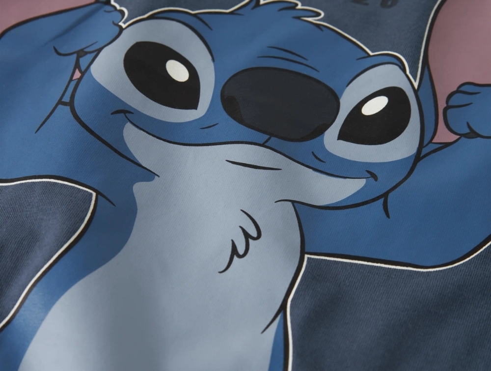 Designet har rund hals og korte ærmer samt en almindelig pasform. Stitch er kendt fra Disney-filmen Lilo & Stitch og er en energisk figur, der lærer om venskab, familie og at være sig selv.