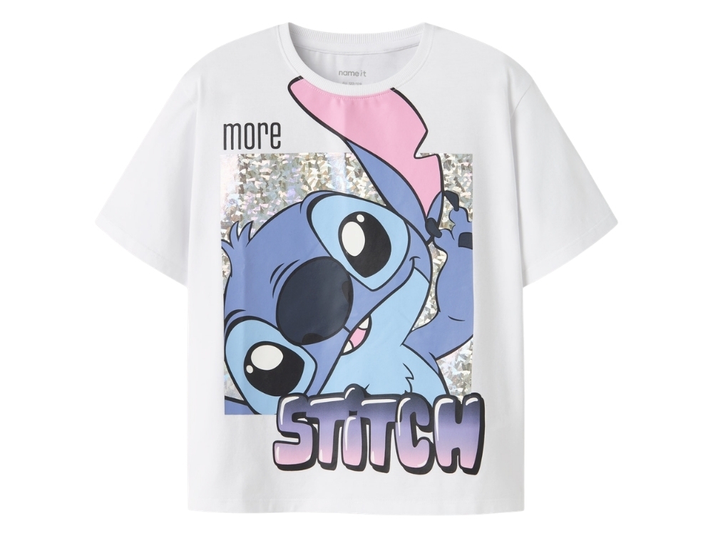 Designet har rund hals og korte ærmer samt en almindelig pasform. Stitch er kendt fra Disney-filmen Lilo & Stitch og er en energisk figur, der lærer om venskab, familie og at være sig selv.