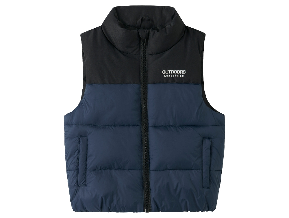 Vesten er let polstret og velegnet som ekstra lag i overgangsperioder. Den har en almindelig pasform, der er behagelig for børn at have på i hverdagen.