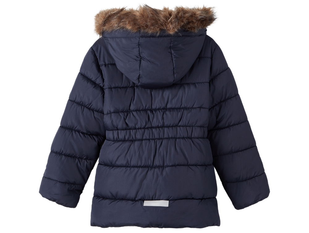 Vinterjakke til piger i farven dark sapphire med aftagelig hætte med trykknapper fra Name It.